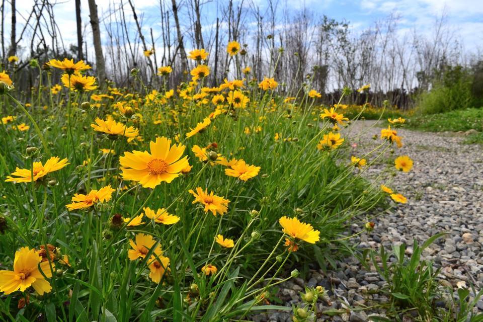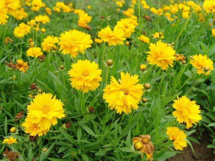 金鸡菊(学名:Coreopsis drummondii Torr. et Gray)是菊科,金鸡菊属多年生宿根草本植物,叶片多对生稀互生、全缘、浅裂或切裂。