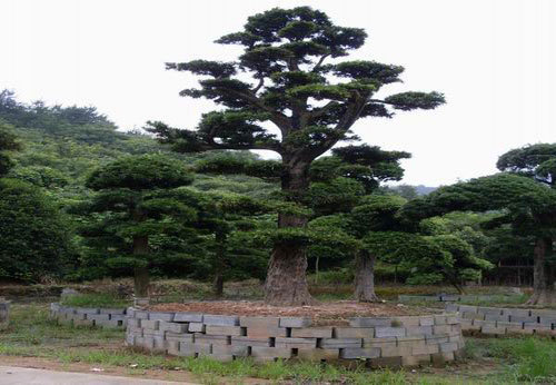 日本罗汉松(学名:Podocarpus macrophyllus (Thunb.)D.Don)罗汉松科植物,树冠广卵形。叶条状披针形,先端尖,基部楔形,两面中肋隆起,表面暗绿色,背面灰绿色,有时被白粉,排列紧密,螺旋状互生。雌雄异株或偶有同株。种子卵形,有黑色假种皮,着生于肉质而膨大的种托上,种托深红色,味甜可食。花期月,种熟期10月。