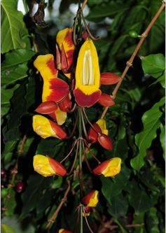 黄花老鸦嘴,学名是Thunbergia mysorensis,科属为爵床科山牵牛属。