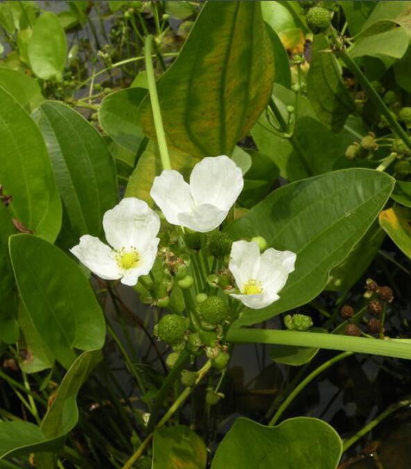 泽泻(学名:Alisma plantago-aquatica Linn. ),多年生水生或沼生草本。全株有毒,地下块茎毒性较大。块茎直径1-3.5厘米,或更大。花药长约1毫米,椭圆形,黄色,或淡绿色;瘦果椭圆形,或近矩圆形,种子紫褐色,具凸起。产黑龙江、吉林等省区。生于湖泊、河湾、溪流、水塘的浅水带,沼泽、沟渠及低洼湿地亦有生长。花较大,花期较长,可用于花卉观赏。亦可入药,主治肾炎水肿、肾盂肾炎、肠炎泄泻、小便不利等症。