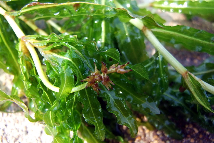 菹草(拉丁学名:Potamogeton crispus)又叫:虾藻、虾草、麦黄草。眼子菜科,眼子菜属。单子叶植物。多年生沉水草本植物。生于池塘、湖泊、溪流中,静水池塘或沟渠较多,水体多呈微酸至中性。茎扁圆形,具有分枝。叶披针形,先端钝圆,叶缘波状并具锯齿。具叶托,无叶柄。花序穗状。秋季发芽,冬春生长,4~5月开花结果,夏季6月后逐渐衰退腐烂,同时形成鳞枝(冬芽)以度过不适环境。冬芽坚硬,边缘具有齿,形如松果,在水温适宜时在开始萌发生长。叶条形,无柄。花果期4-7月。 可作绿肥并可净化水质。