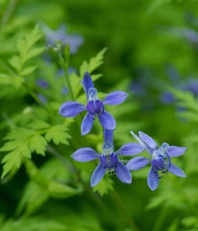 还亮草(学名:Delphinium anthriscifolium Hance)是毛茛科,翠雀属多年生草本植物,茎高可达78厘米,等距地生叶,分枝。羽状复叶,近基部叶在开花时常枯萎;叶片菱状卵形或三角状卵形,羽片狭卵形,表面疏被短柔毛,背面无毛或近无毛;叶柄无毛或近无毛。总状花序,有花多达15朵;轴和花梗短柔毛;基部苞片叶状,小苞片生花梗中部,披针状线形,萼片堇色或紫色,椭圆形至长圆形,退化雄蕊与萼片同色,无毛,种子扁球形,3-5月开花。