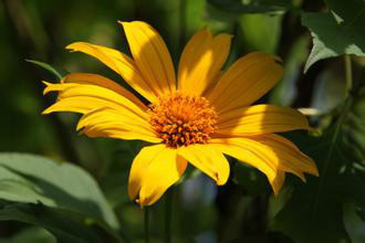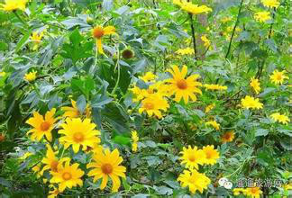 肿柄菊(学名:Tithonia diversifolia A. Gray)菊科肿柄菊属植物,一年生草本,高2-5米。叶卵形或卵状三角形或近圆形,头状花序大,顶生于假轴分枝的长花序梗上,总苞片4层,外层椭圆形或椭圆状披针形,花果期9-11月。