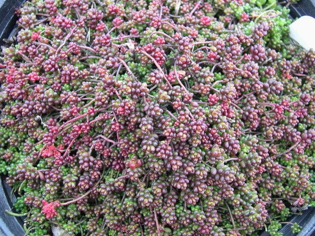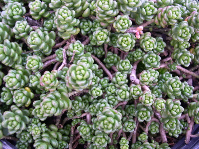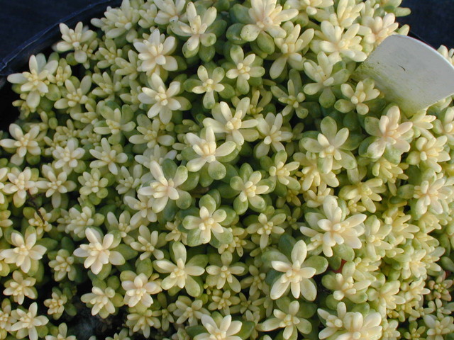 玉米石,为多年生草本肉质植物,植株低矮丛生,植株可长到0.1-0.5米。叶片膨大为卵形或圆筒形,互生,长0.6-1.2cm,先端钝圆,亮绿色,光滑。伞形花序下垂,花白色。栽培品种有其他花色。