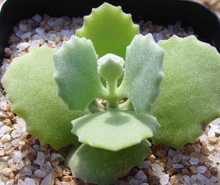 千兔耳(学名:Kalanchoemillotii景天科伽蓝菜属植物,具有毛茸茸的毛、半边锯齿状的叶,缺口会再冒出小芽,夏型(冬眠),喜光照、可直晒、耐热(但要通风),适合春、秋。夏天要注意浇水不可过多,也不能太少。适合肥沃、排水性佳的沙土。很会长,可长到30公分左右,日晒不足会徒长。