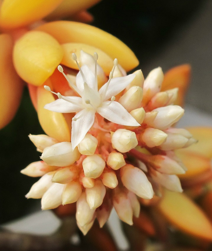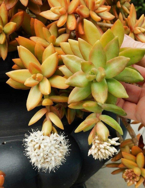 铭月(Sedum adolphi)是景天科景天属的多年生亚灌木。多分枝,茎蔓生或直立,高约10-30厘米。 春秋为生长旺季;夏季高温时期生长减缓,需控制浇水量,露天养护植株需适当遮阴;冬季在5摄氏度以上的环境温度下可安全越冬。