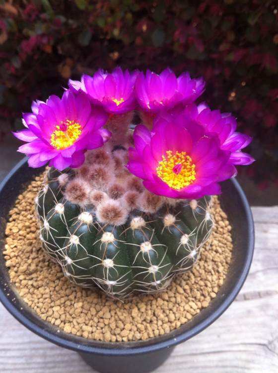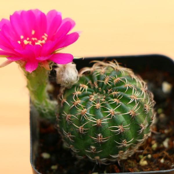 眩美玉(学名:Notocactus uebelmannianus仙人掌科南国玉属植物。植株单生,圆球形至椭圆形,可做小型盆栽观赏,开花,花期长花色多。 眩美玉植株单生,圆球形至椭圆形,球径6-8厘米,高10-12厘米,体色暗绿色。具13-15个圆疣状的浅棱。辐射状周刺8-10枚;无中刺;新刺黄褐色,老刺灰褐色。