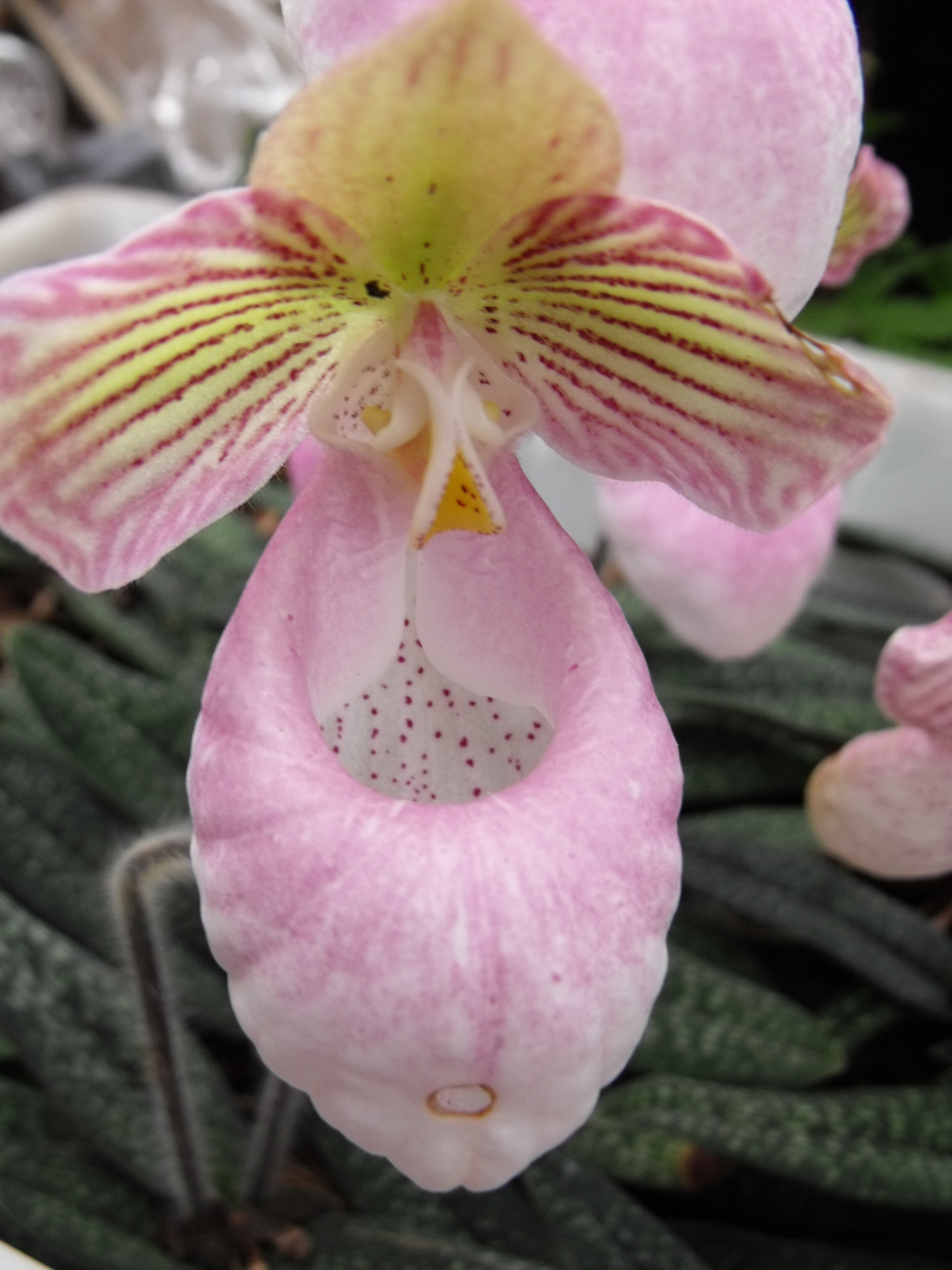 硬叶兜兰(学名:Paphiopedilum wardii)兰科,兜兰属地生或半附生植物植物。叶基生;数枚至多枚,叶片带形、革质。花葶从叶丛中长出,花苞片非叶状;子房顶端常收狭成喙状;花大而艳丽,有种种色泽;中萼直立,花粉粉质或带粘性,退化雄蕊扁平;柱头肥厚,下弯,柱头面有乳突,果实为蒴果。兜兰花比较雅致,色彩比较庄重,色及带有不规则斑点或条纹。花瓣较厚,花朵开放期比较长。属观赏类花草。